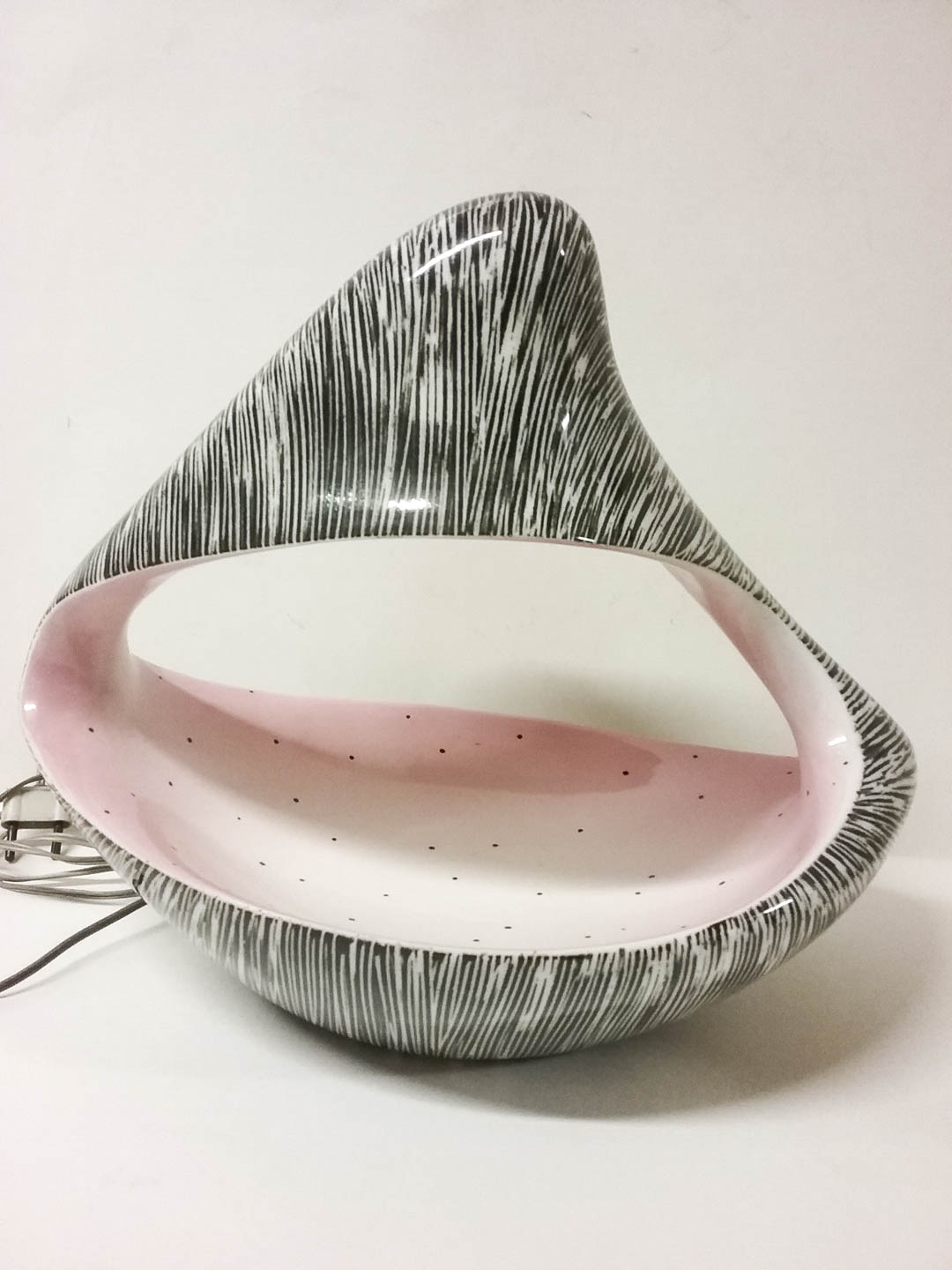 Ariele Torino Lampada;in ceramica smaltata nei toni del bianco, nero e rosa, h. 28 x 31 cm, marchio
