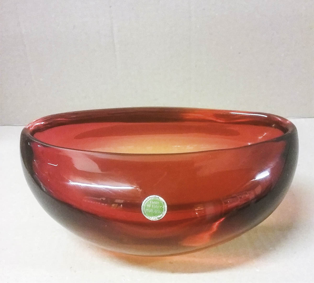 Flavio Poli (Chioggia 1900 – Venedig/Venezia 1984) Ciotola per Vetreria Seguso, anni '50;in vetro sommerso ambra, h. 9 x 18 cm, in perfetto stato
