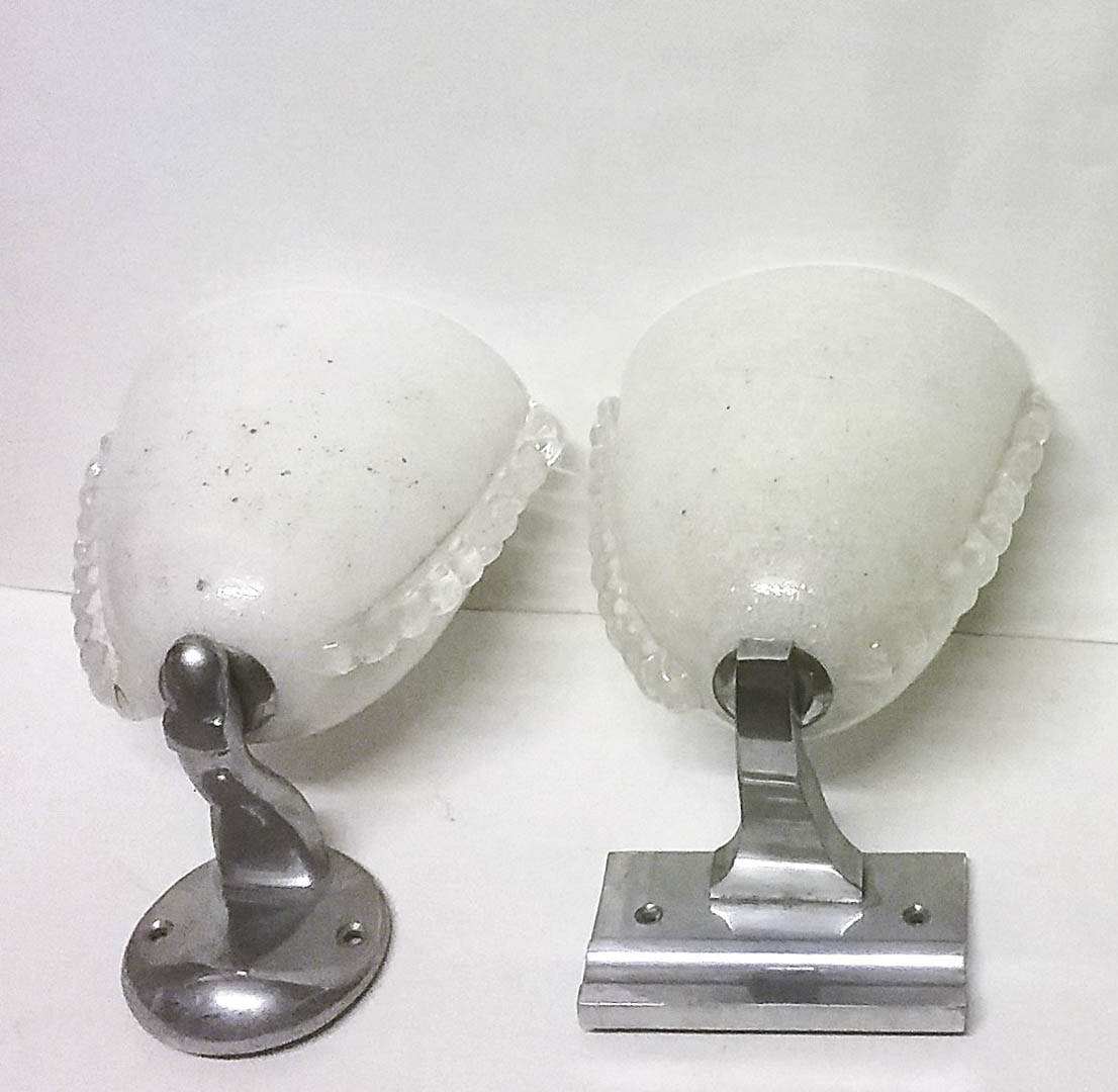 Venini Murano Due appliques, Anni ‘40;metallo e vetro pulegoso con morise in...