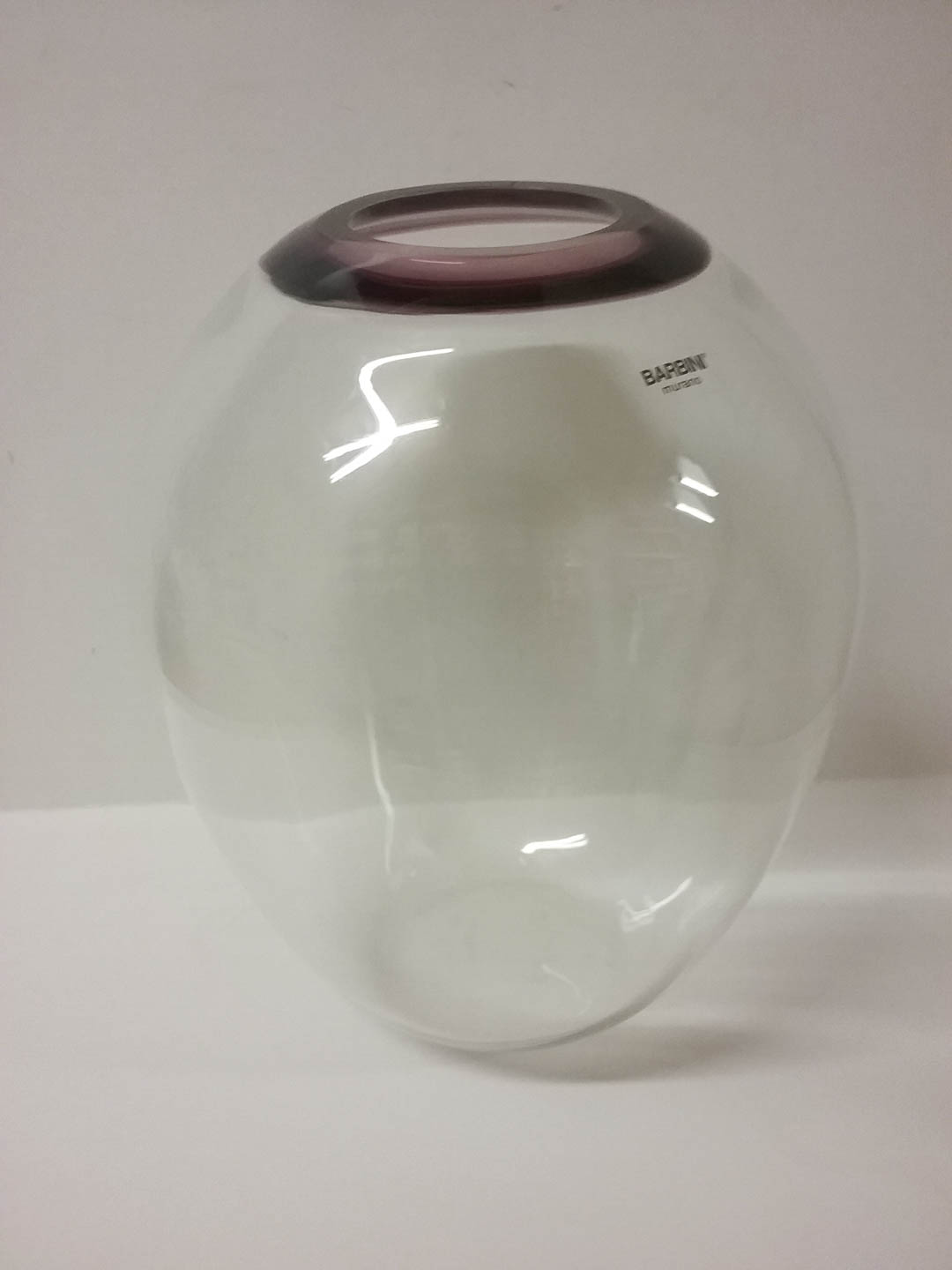 Alfredo Barbini Grande vaso, Anni ‘70;in vetro trasparente incalmo con bocca in vetro ametista, h. 31 cm, etichetta