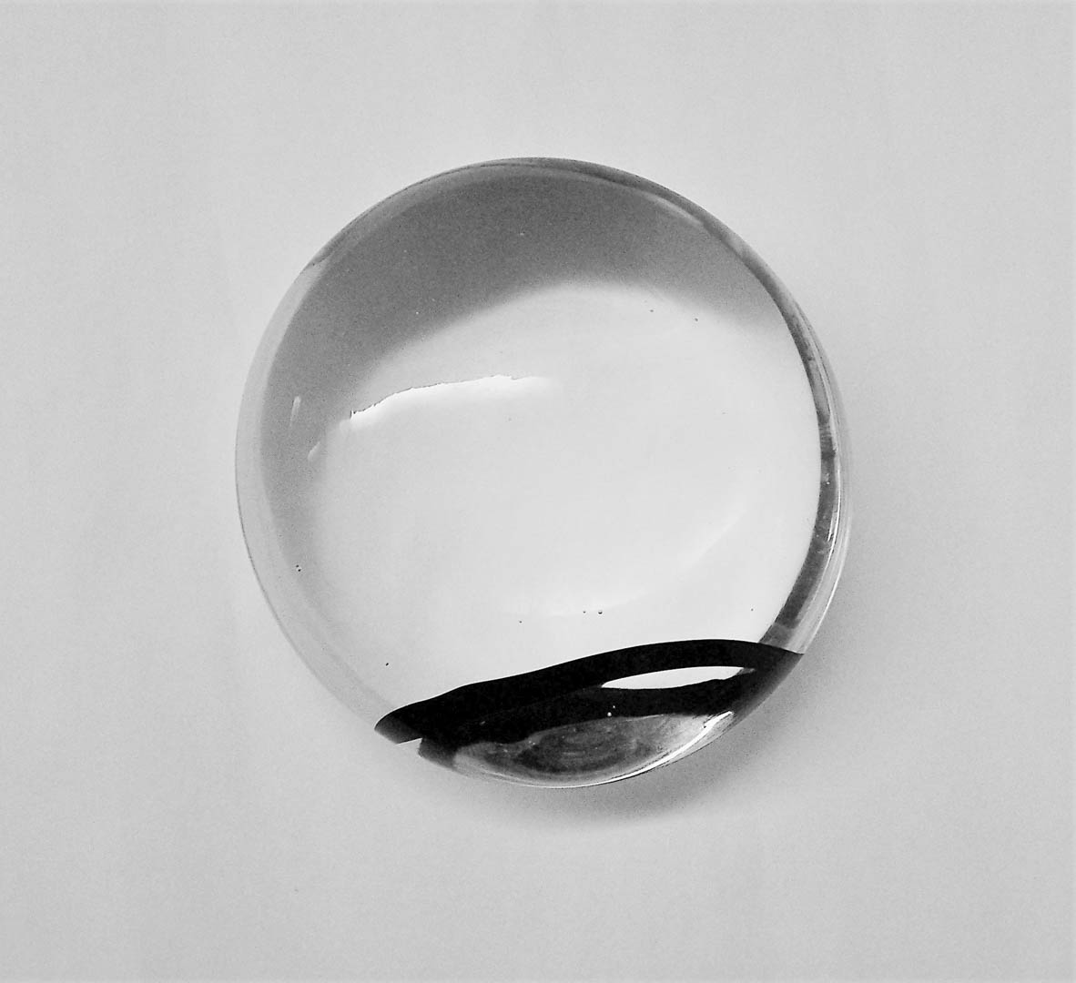 Renato Toso (1940) Sasso, 1970;in vetro massiccio trasparente a fascia nera, h. 6,5 x 22 cm, serie presentata