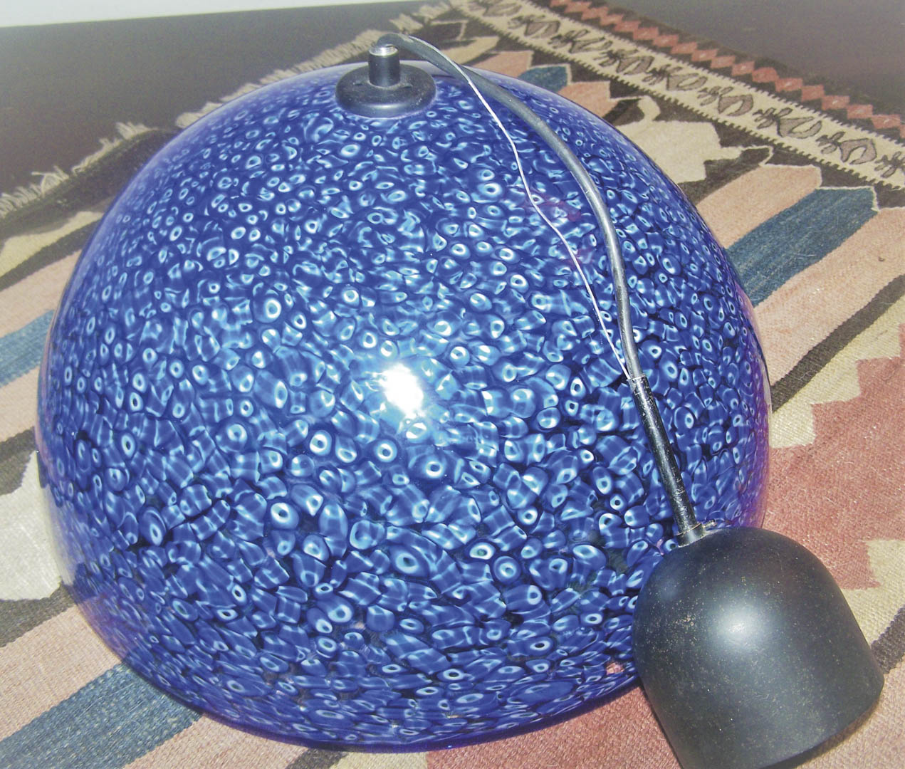 Gae Aulenti (Palazzolo della Stella 1927 – Mailand/Milano 2012) Lampada Neverrino;a murrine blu verdi, diam. 44 cm, produzione Vistosi Murano. Timbro della manifattura