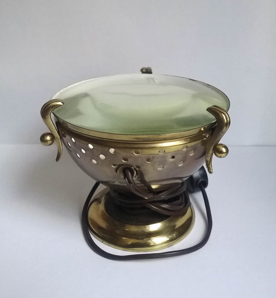 Chiarini Milano Lampada da tavolo;in ottone con diffusore a grossa lente, h. 11 x 14 cm, rara etichetta sotto
