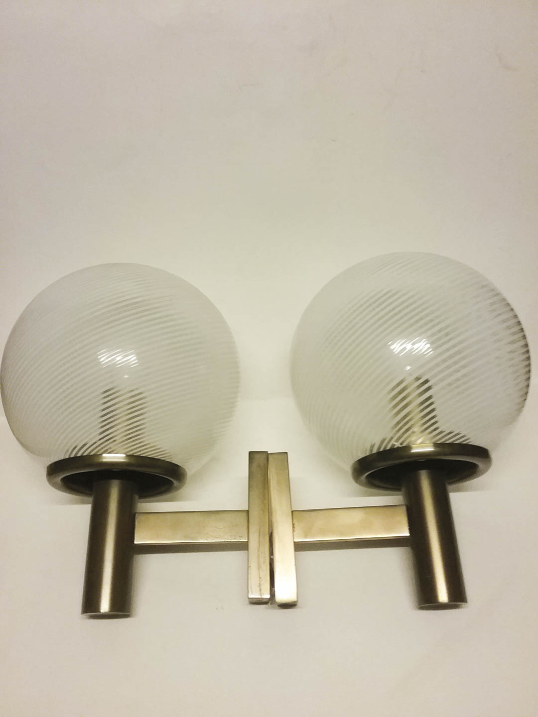 Venini Murano Grandi appliques, Anni ‘70;in vetro trasparente filigrana e metallo satinato, h. 34 cm. In ottimo stato