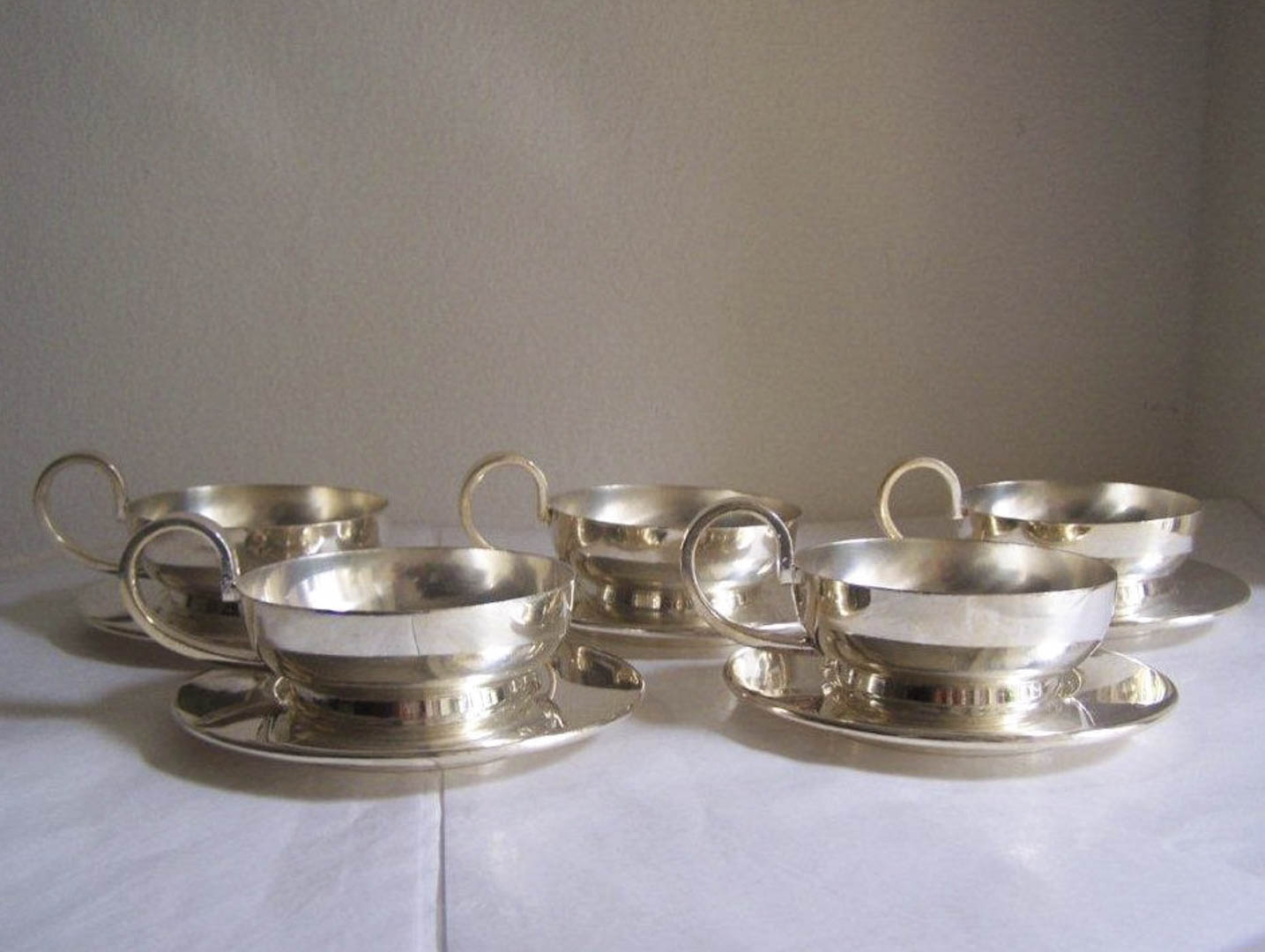 Giò Ponti (Mailand/Milano 1891 – 1979) Servizio per Arthur Krupp, Anni ‘30;composto da 5 tazze e piattini su piede in alpacca, in buono stato