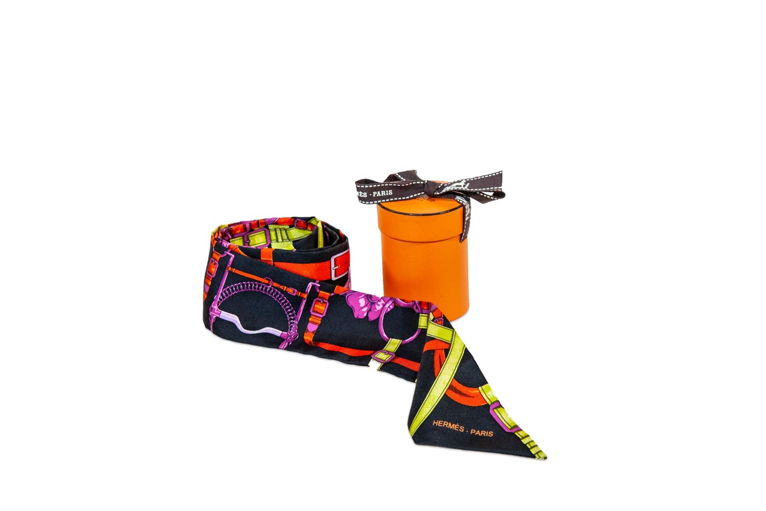 in seta stampa fantasia colori vari su fondo nero, cm 86, con scatolain seta stampa fantasia colori vari su fondo nero, cm 86, con scatola