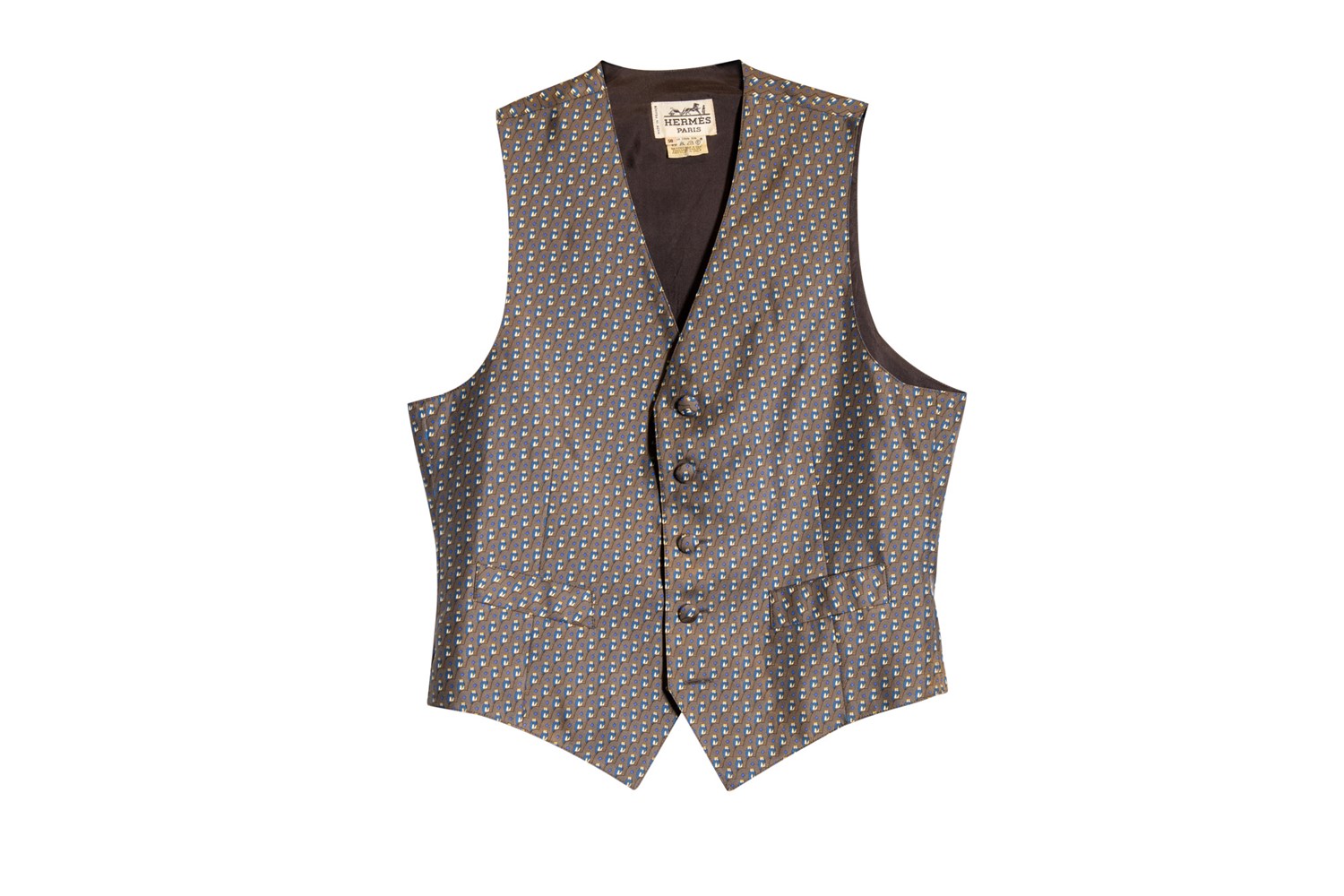 in seta color verde, decorato con gufi, cinque bottoni in seta, due tasche, tg 50 francese