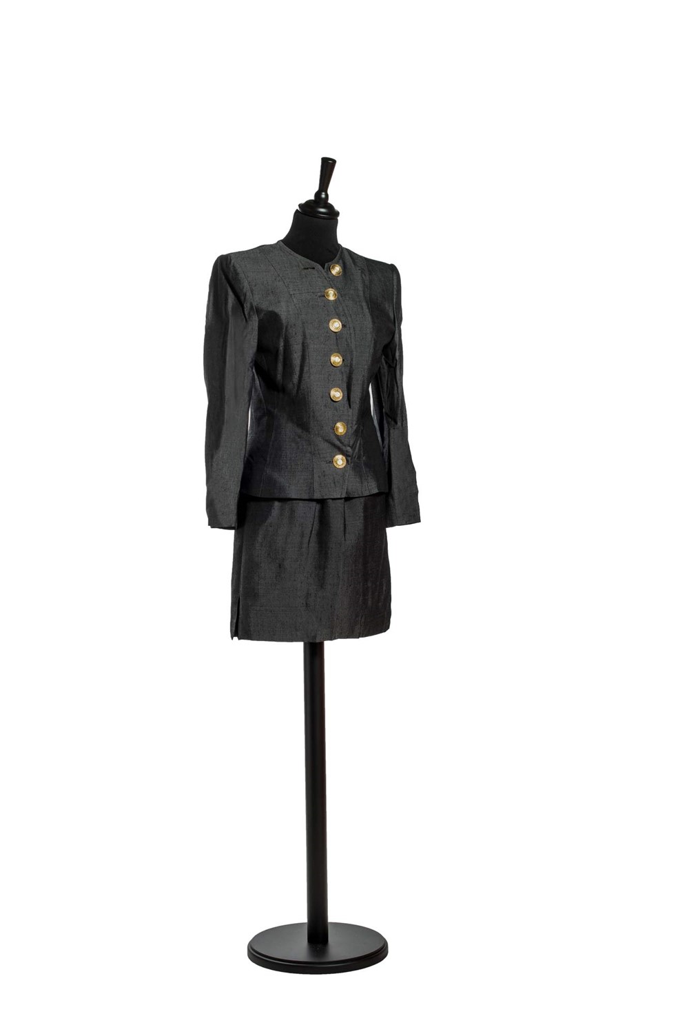 in misto seta color grigio melange, bottoni gioiello, tg 36 francesein misto seta color grigio melange, bottoni gioiello, tg 36 francese
