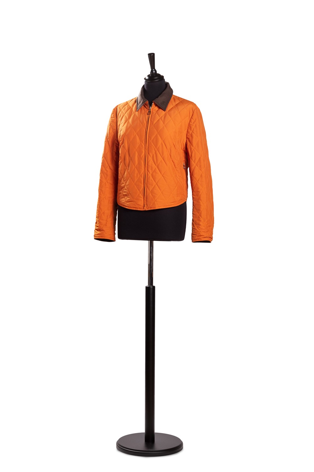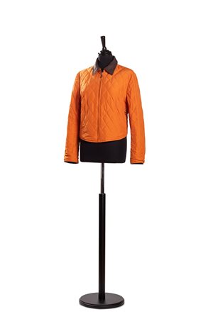 in tessuto color marrone e arancione, due tasche al fianco con zip e chiusura con zip, tg L (difetti)in tessuto color marrone e arancione, due tasche al fianco con zip e chiusura con zip, tg L (difetti)