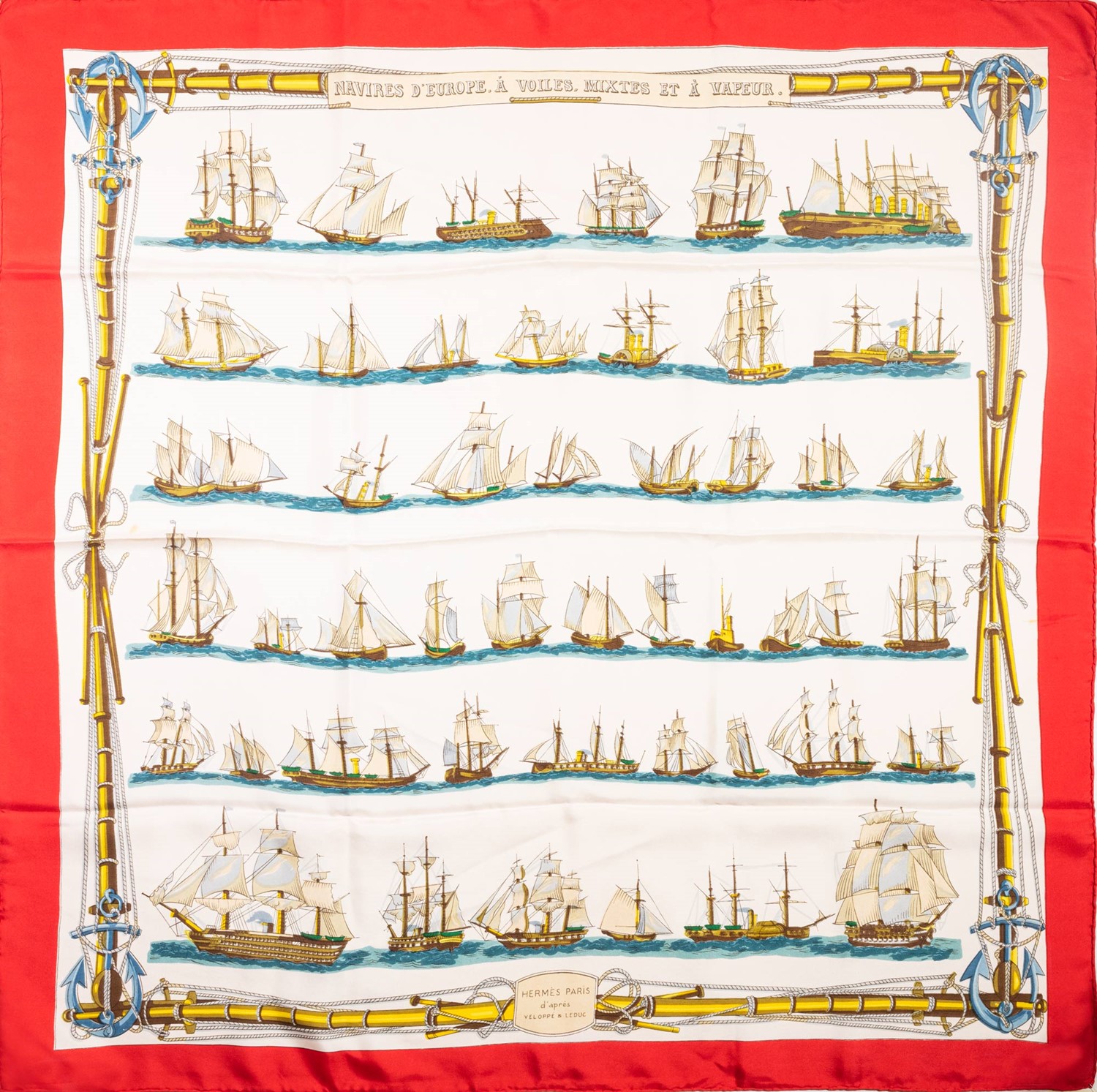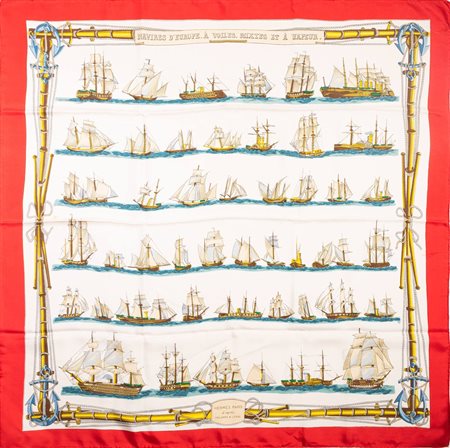 Hermès - Navires d'Europe, à Voiles, Mixtes et à Vapeur silk twill scarf, 1965