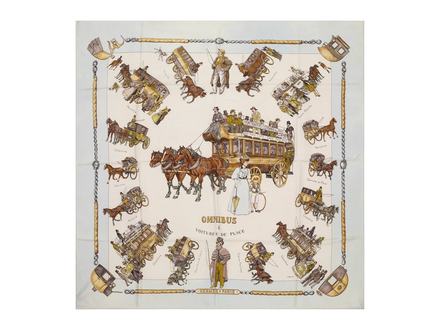 Hermès - Omnibus et Voitures de Place silk twill scarf, 1967