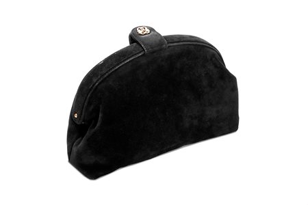 a mezzaluna in camoscio color nero, dettagli in metallo logato, cm 23 (difetti)a mezzaluna in camoscio color nero, dettagli in metallo logato, cm 23 (difetti)