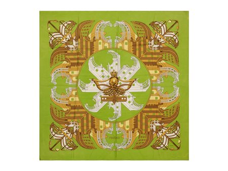in seta su fondo color verde mela, Philippe Ledoux (gravi difetti)in seta su fondo color verde mela, Philippe Ledoux (gravi difetti)