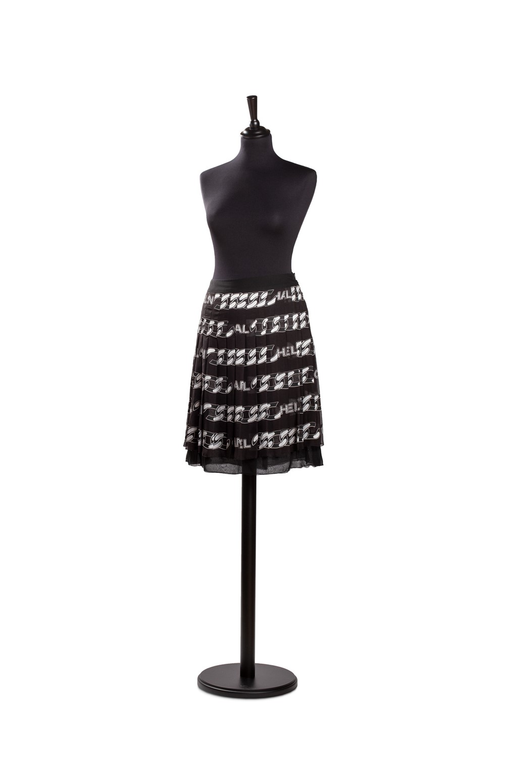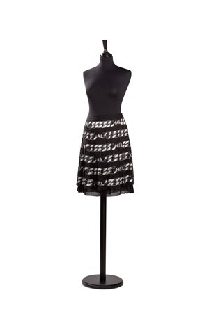in viscosa e seta color bianco e nero, decoro con scritte Chanel e fantasia a catena, tg 42 francese (lievi difetti)in viscosa e seta color bianco e nero, decoro con scritte Chanel e fantasia a catena, tg 42 francese (lievi difetti)
