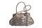 in tessuto color argento e rifiniture in pitone stampato, interno in camoscio, con doppio manico, cm 22 x 19 x 3 (difetti)in tessuto color argento e rifiniture in pitone stampato, interno in camoscio, con doppio manico, cm 22 x 19 x 3 (difetti)