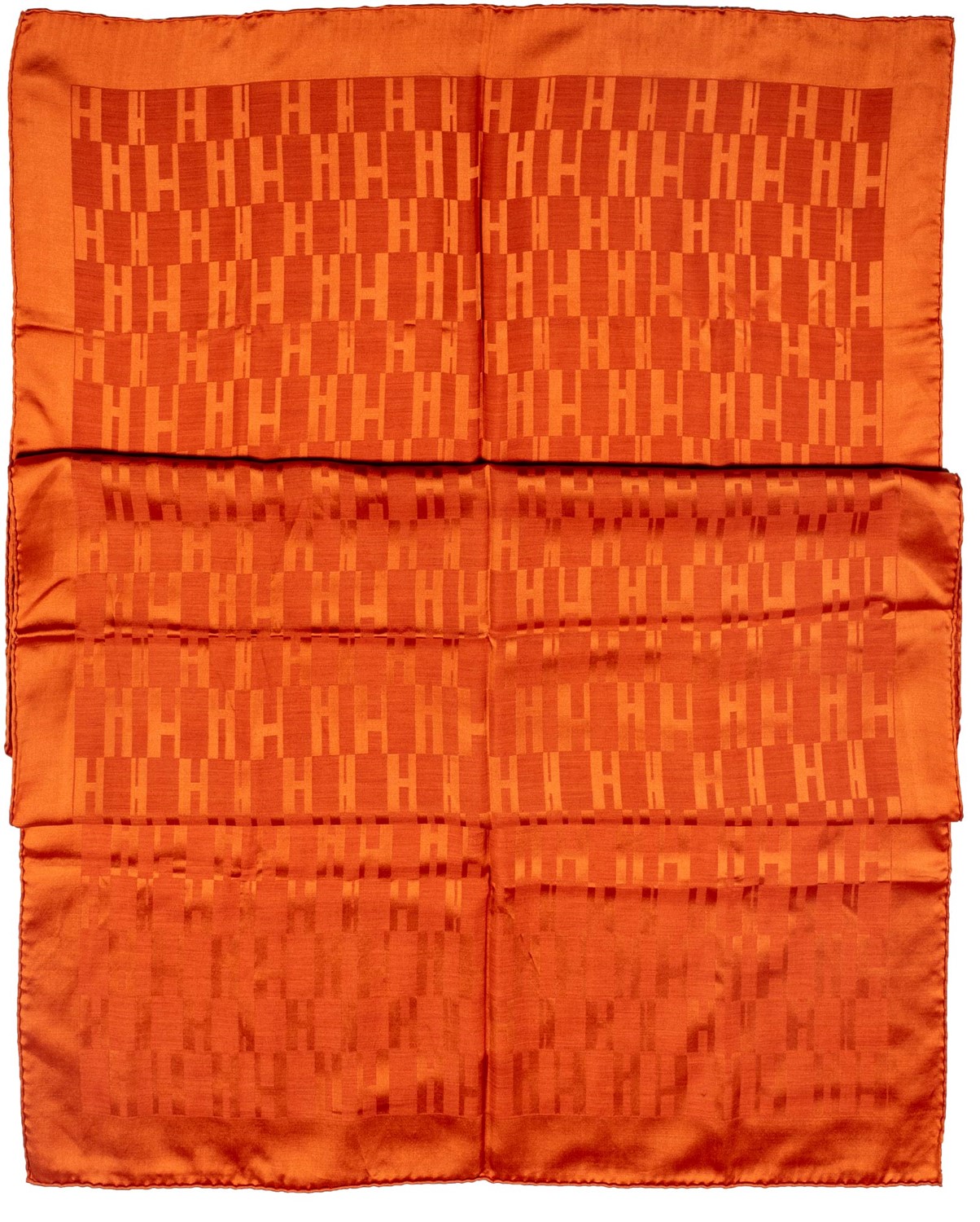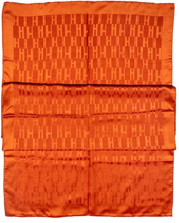 in lana e seta color arancio, motivo "H", cm 70 x 70in lana e seta color arancio, motivo "H", cm 70 x 70