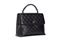 in pelle trapuntata color nero, logo in metallo dorato, manico stondato, con tasca sul retro e sacchetto, cm 30 (lievi difetti)in pelle trapuntata color nero, logo in metallo dorato, manico stondato, con tasca sul retro e sacchetto, cm 30 (lievi difetti)
