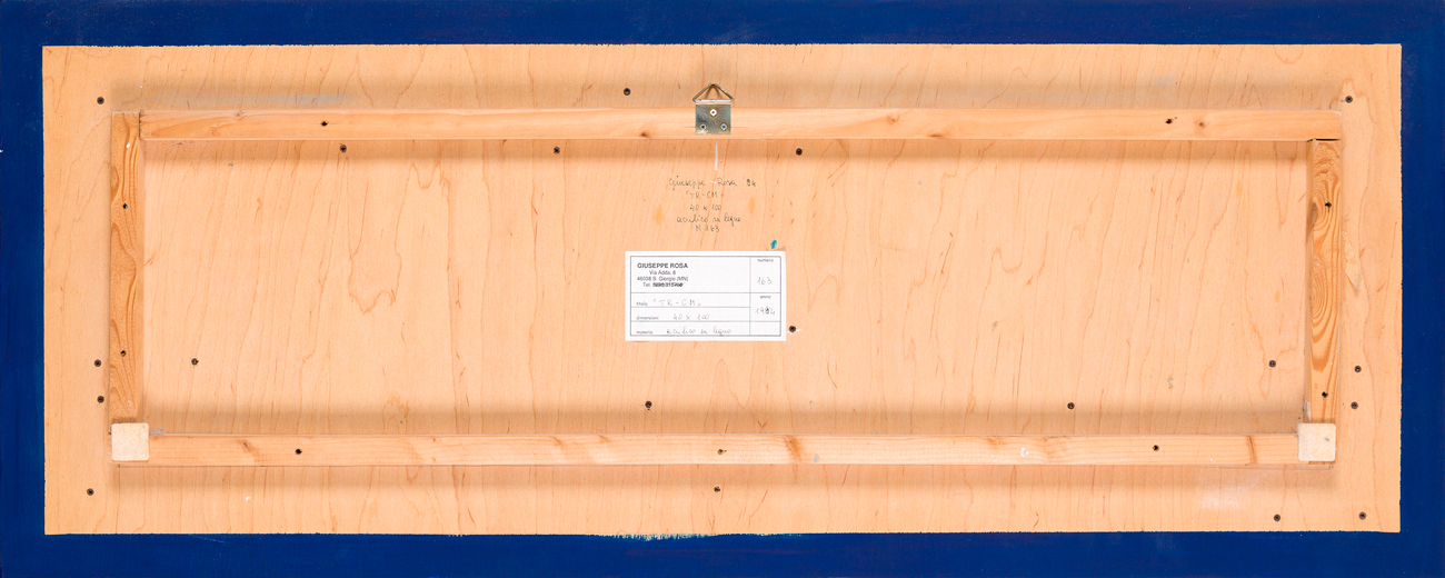 Firma, titolo, datazione, misure, tecnica e numero di repertorio (N.163) al retro