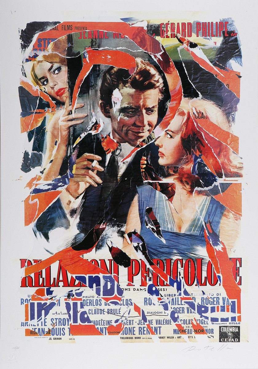 ROTELLA MIMMO (1918 - 2006) Senza titolo. Litodecollage. Cm 90x65. Tir. 31/125 in basso a sinistra a matita. Timbro a secco della Fondazione Rotella di Milano. Firma in basso a destra a matita..