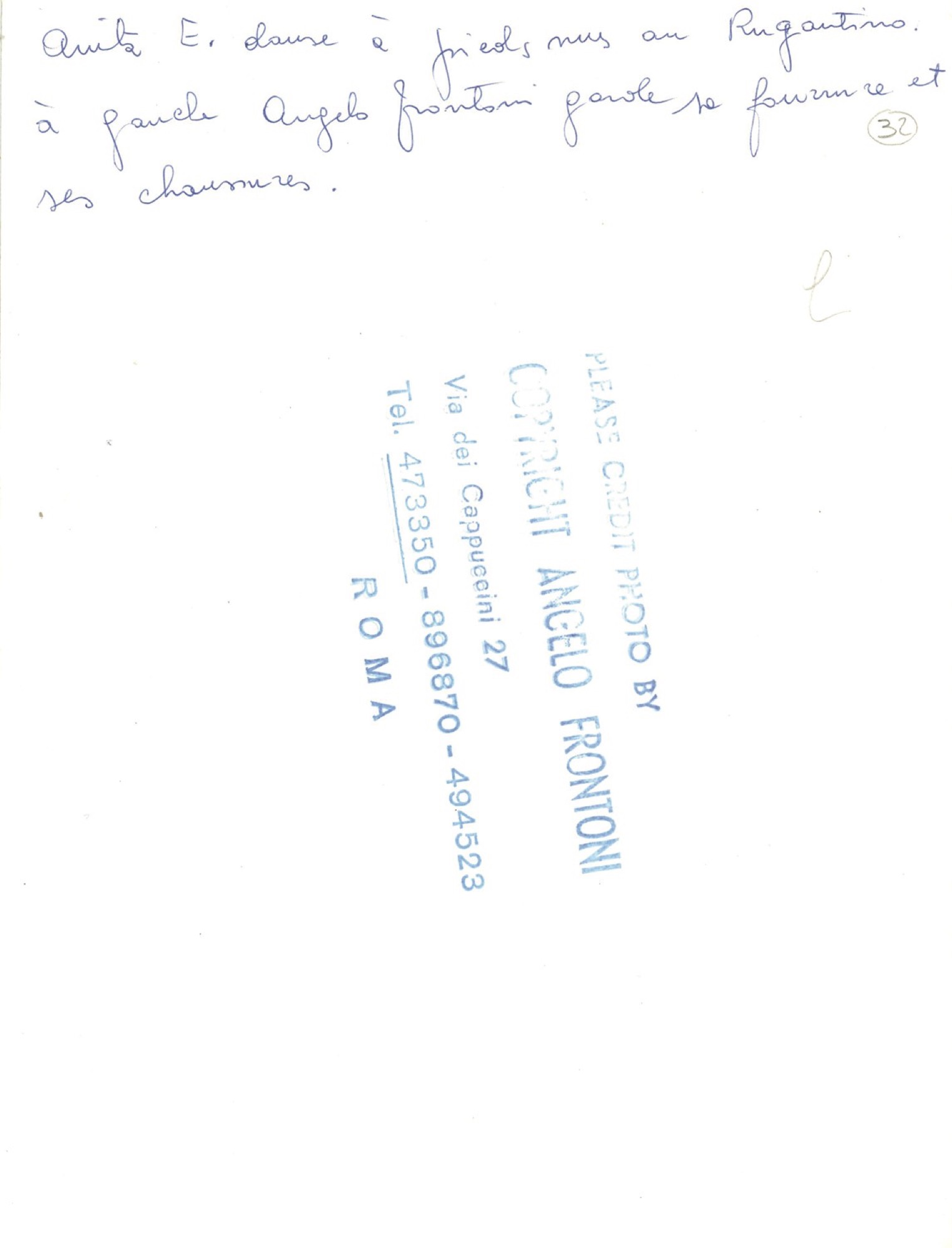 Una stampa con note a penna blu e timbro del fotografo al verso