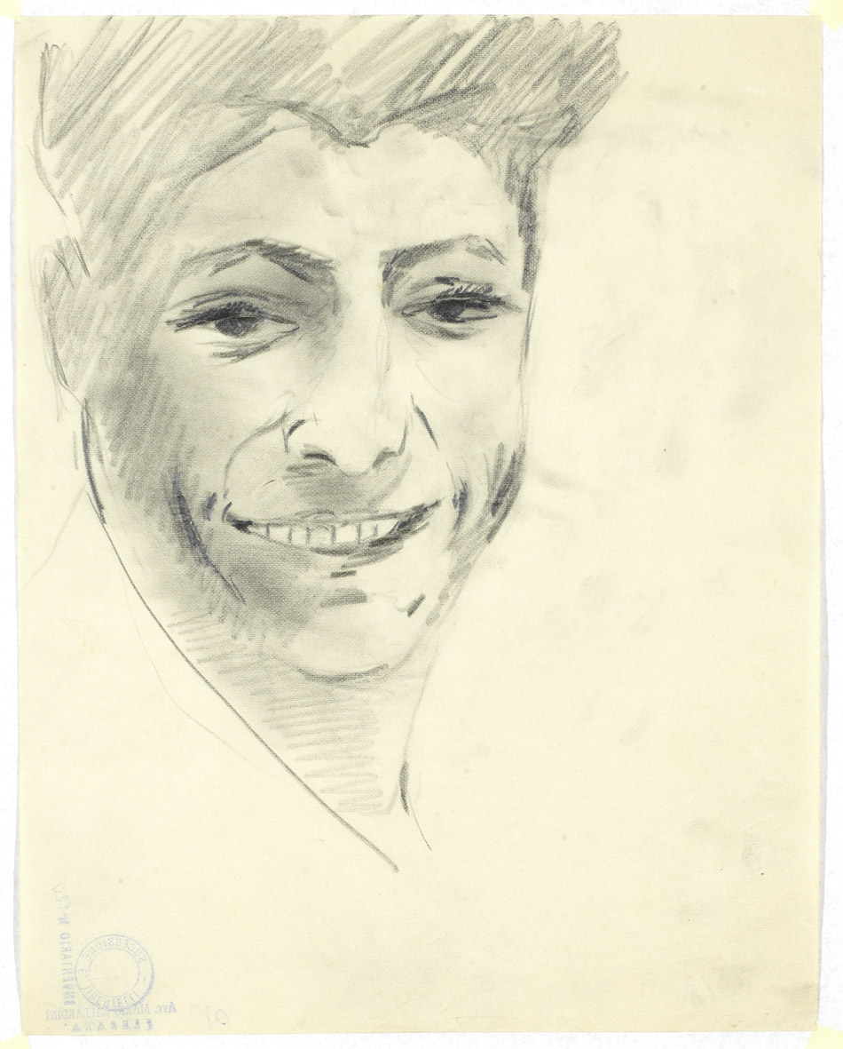 Filippo de Pisis Ferrara 1896 - Milano 1956 Lotto di quattro opere su carta A- Uomo seduto con calze, 1946, tecnica mista su carta, cm. 20,5x30,7. Scritta e data in basso a destra: [...] / 46. B- Ritratto di uomo sorridente, matita su carta, cm. 27x21. Al verso: timbro Successione E. Tibertelli / Avv. Mario Ballardini / Ferrara / Inventario n. 224. C- Nudo con braccia alzate, sanguigna su carta, cm. 30,3x40,8. D- Gambe di giovane, 1926, matita su carta, cm. 50,3x37,5. Data in basso a destra: 15 IX 26 [...]. Al verso: timbro Successione E. Tibertelli / Avv. Mario Ballardini / Ferrara / Inventario n. 224. Storia: Eredità Bona Tibertelli de Pisis de Mandriagues, Parigi; Collezione privata