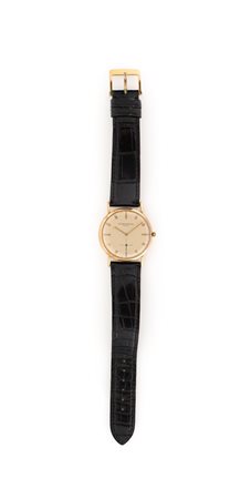 modello uomo classico, cassa 32 mm in oro giallo 750/00, secondi ore 6, carica manuale, funzionante, segni sul quadrante.