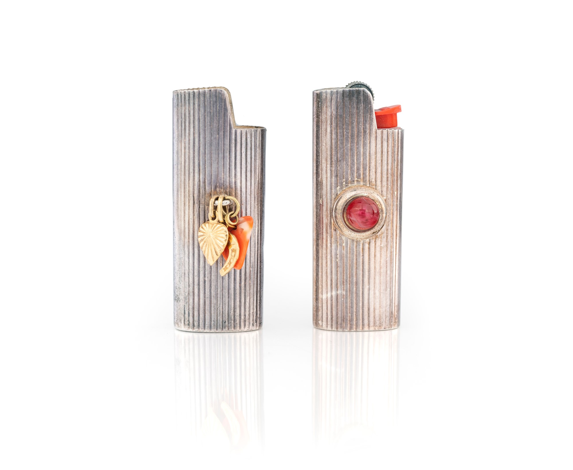 DUE PORTA ACCENDINO IN ARGENTO E ORO