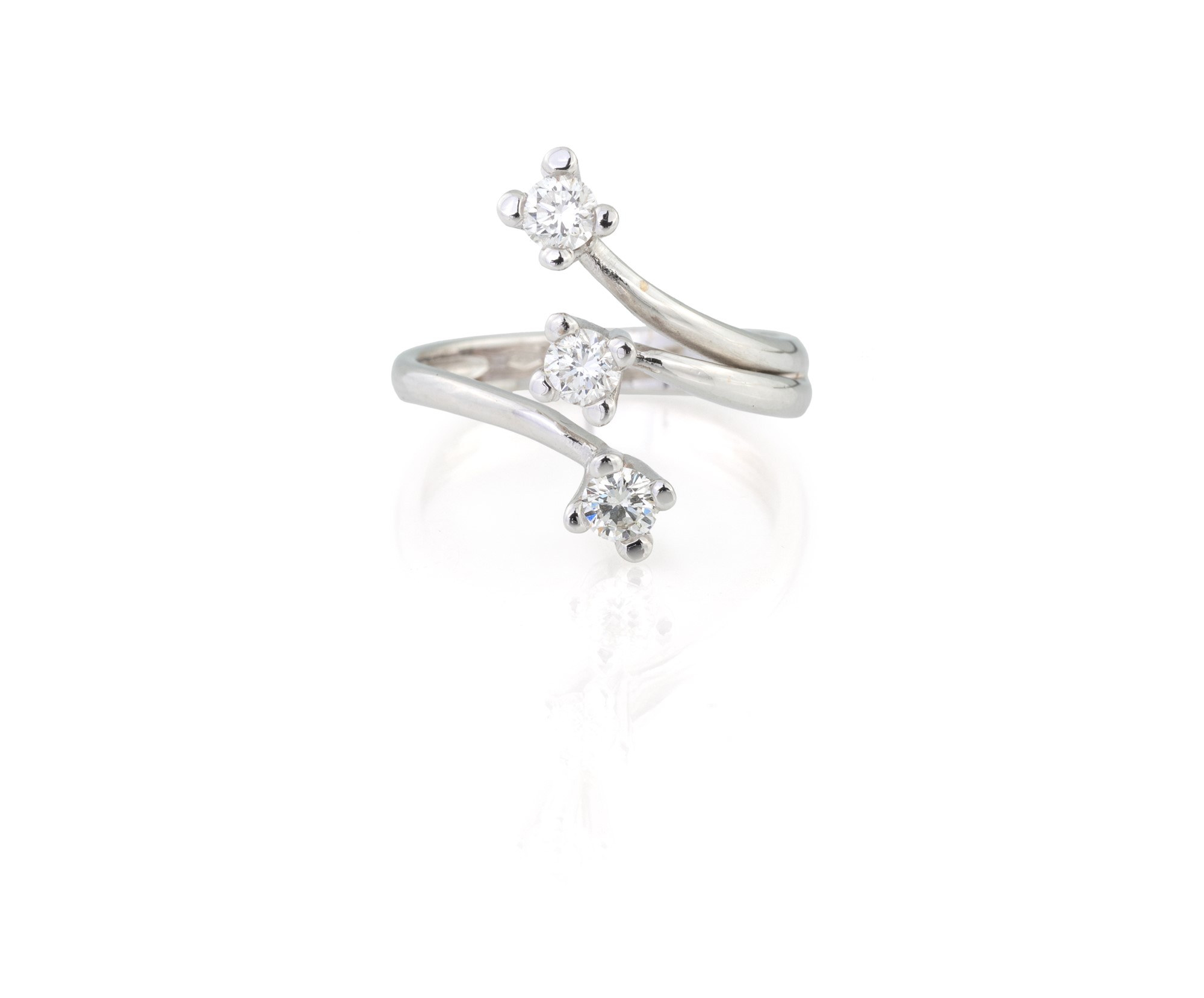 in oro bianco 750/000, tre brillanti ct 0,51 colore G, peso g 4,90