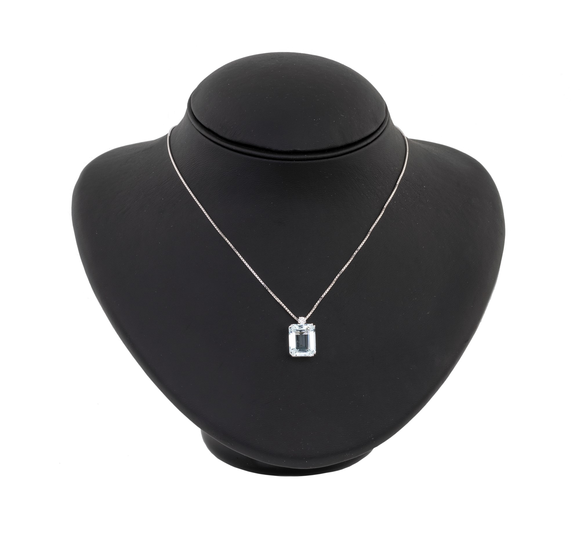 di ct 5,50 su oro bianco 750/000, brillanti ct 0,08, catenella San Marco, g 5,40
