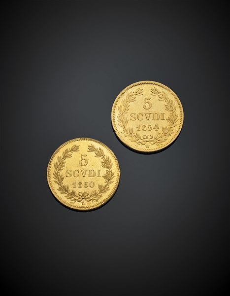 STATO PONTIFICIO Pio IX (1846-1870) 2 pezzi da 5 scudi di varie date, oro. Zecc