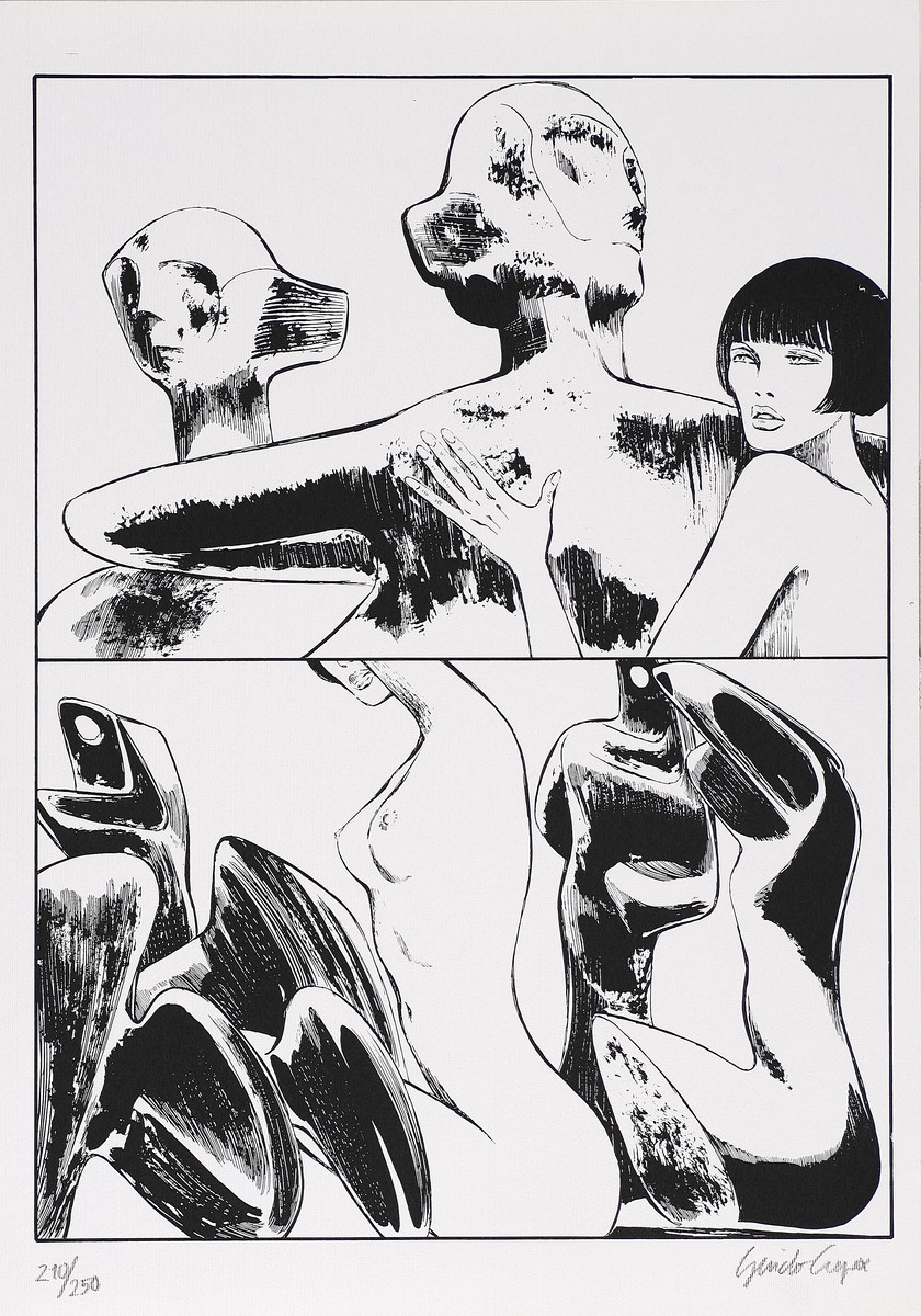 CREPAX GUIDO (1933 - 2003) Senza titolo. Litografia. Cm 49x34,5. Tiratuta: 210/250. Dalla serie - Valentina incontra Moore - Edizioni dell'Agrifoglio, Milano. Firma e tiratura in basso a matita.
