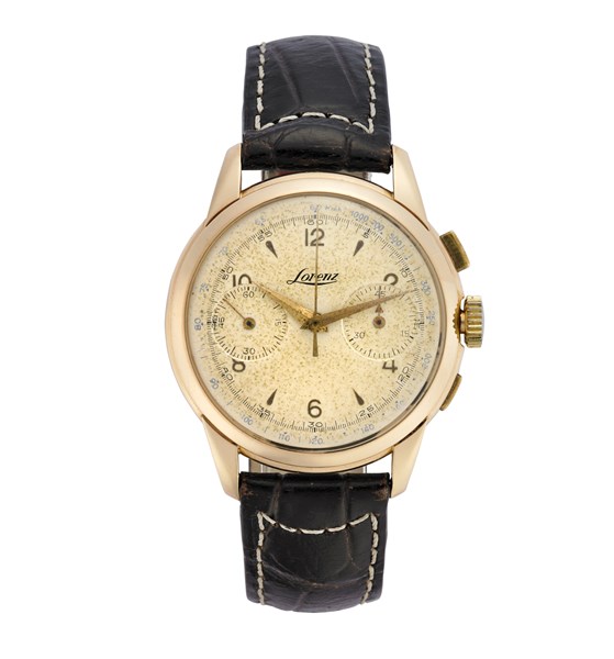 LORENZ, Cronografo Orologio da polso da uomo in oro rosa 18K Anni '40 Quadrante