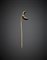 Pin a falce di luna in oro giallo, diamanti a mezza rosetta e rubini g 1,84 circa, lungh. cm 7,70 circa.