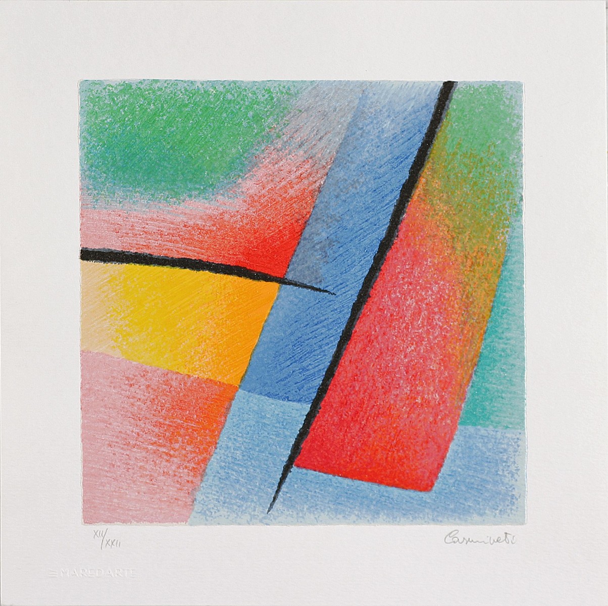 CARMINATI DAVIDE (n. 1958) Riflessi, 2000. Serigrafia. Cm 22x22. Serigrafia polimaterica realizzata con 25 passaggi di colore su carta Fabriano 400 grammi. Misure di tutto il foglio: 30x30 cm. Tir. XII/XXII. Firma e tiratura in basso a matita.