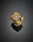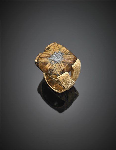 Anello in oro giallo con quarzo rutilato stellato ed ematite al centro, g 24,10