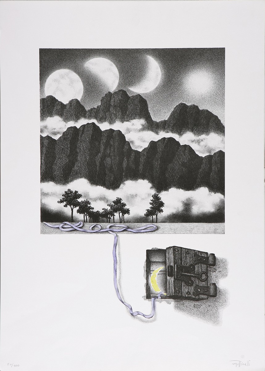 MOTTINELLI Senza titolo. Serigrafia. Cm 53x35. Misure di tutto il foglio: 70x50 cm. Tir. 50/100 in basso a sinistra. Firma e tiratura in basso a matita.