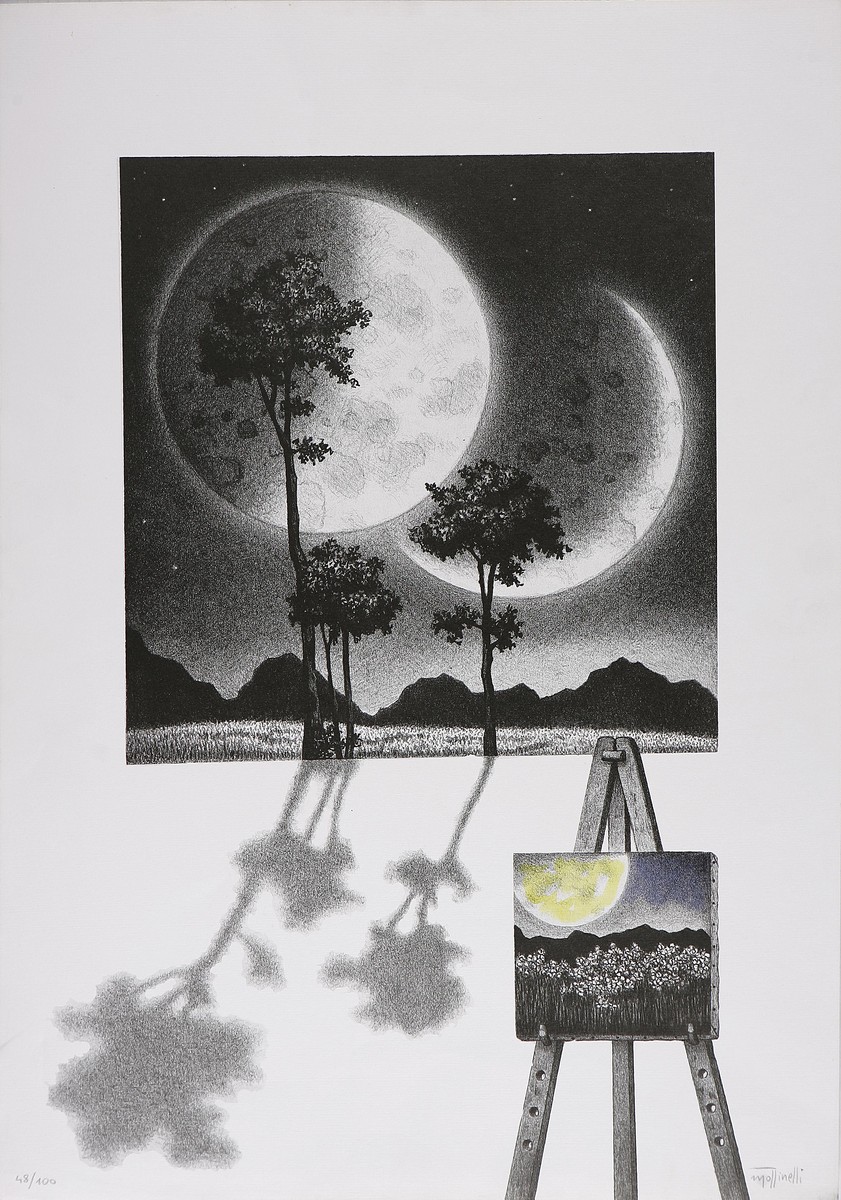 MOTTINELLI Senza titolo. Serigrafia. Cm 61x35. Misura di tutto il foglio: 70x50 cm. Tir. 48/100 in basso a sinistra. Firma e tiratura in basso a matita.