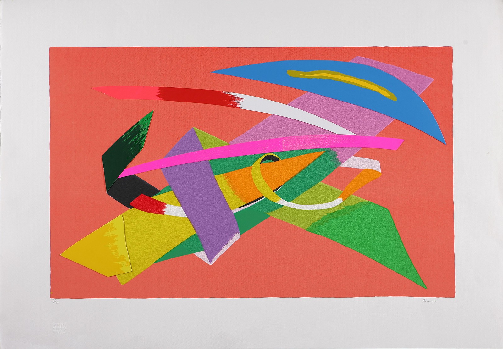 NUCARA RENZO (n. 1955) Senza titolo, 1990. Serigrafia. Cm 50x80. Misure di tutto il foglio: 70x100 cm. Tir. 56/195 in basso a sinistra. Firma, data e tiratura in basso a matita.