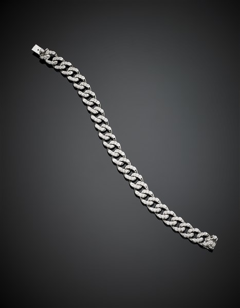 Bracciale groumette in oro bianco rifinito con diamanti per complessivi ct. 1,60 circa, g 35,20 circa, lungh. cm 18 circa. Marcato 948 MI. (mancanze)
