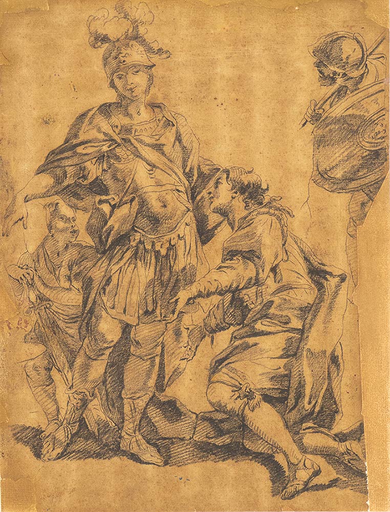 Studio per una scena con due soldati in armature romane e due figure in abiti settecenteschi