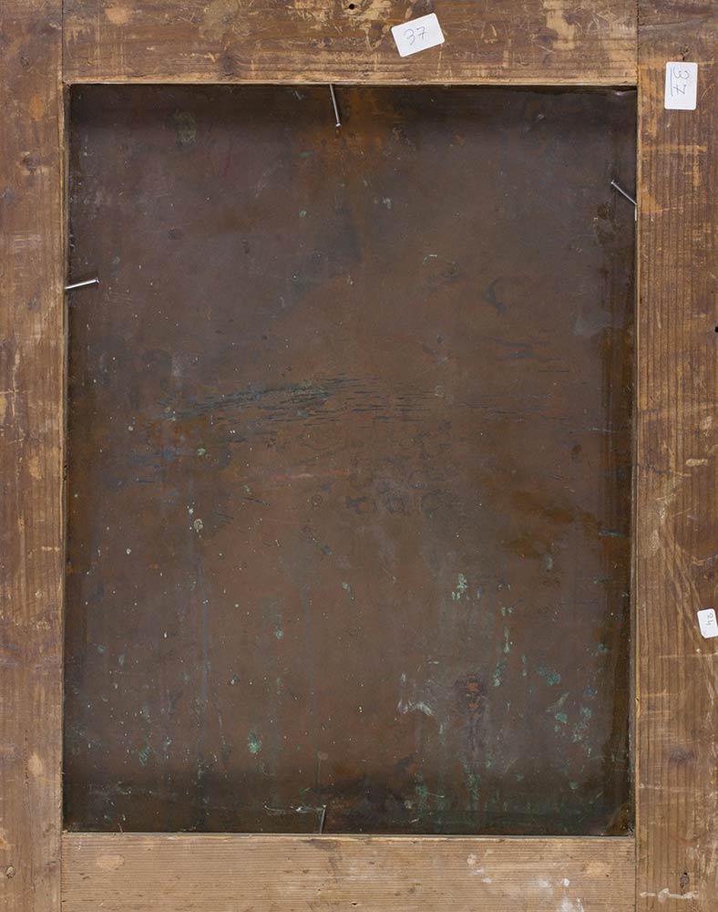 Eseguito su una lastra di rame di notevoli dimensioni, il dipinto costituisce una fedele replica cinquecentesca di alta qualità di una delle più complesse e monumentali creazioni dell’attività estrema di Raffaello: la cosiddetta Sacra Famiglia di Francesco I, realizzata nel 1518 su commissione di papa Leone X come dono per la regina Claudia di Francia (Parigi, Musée du Louvre). Il rame presenta solo minime varianti rispetto al prototipo, che coinvolgono soprattutto i rapporti cromatici e luministici, nonché modesti aggiustamenti nei dettagli e nelle posture delle figure.