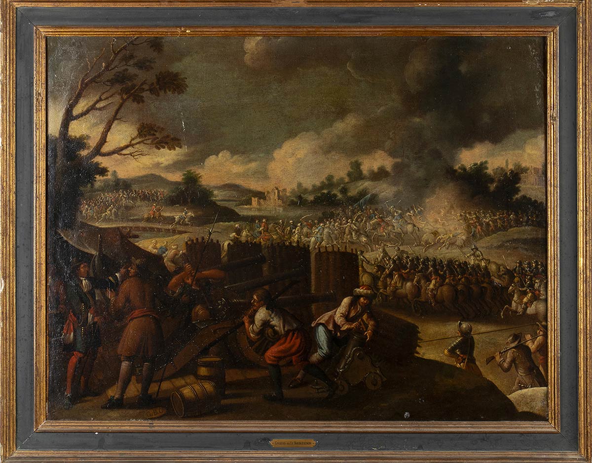 Scontro di cavallerie con cannoneggiamento in primo piano