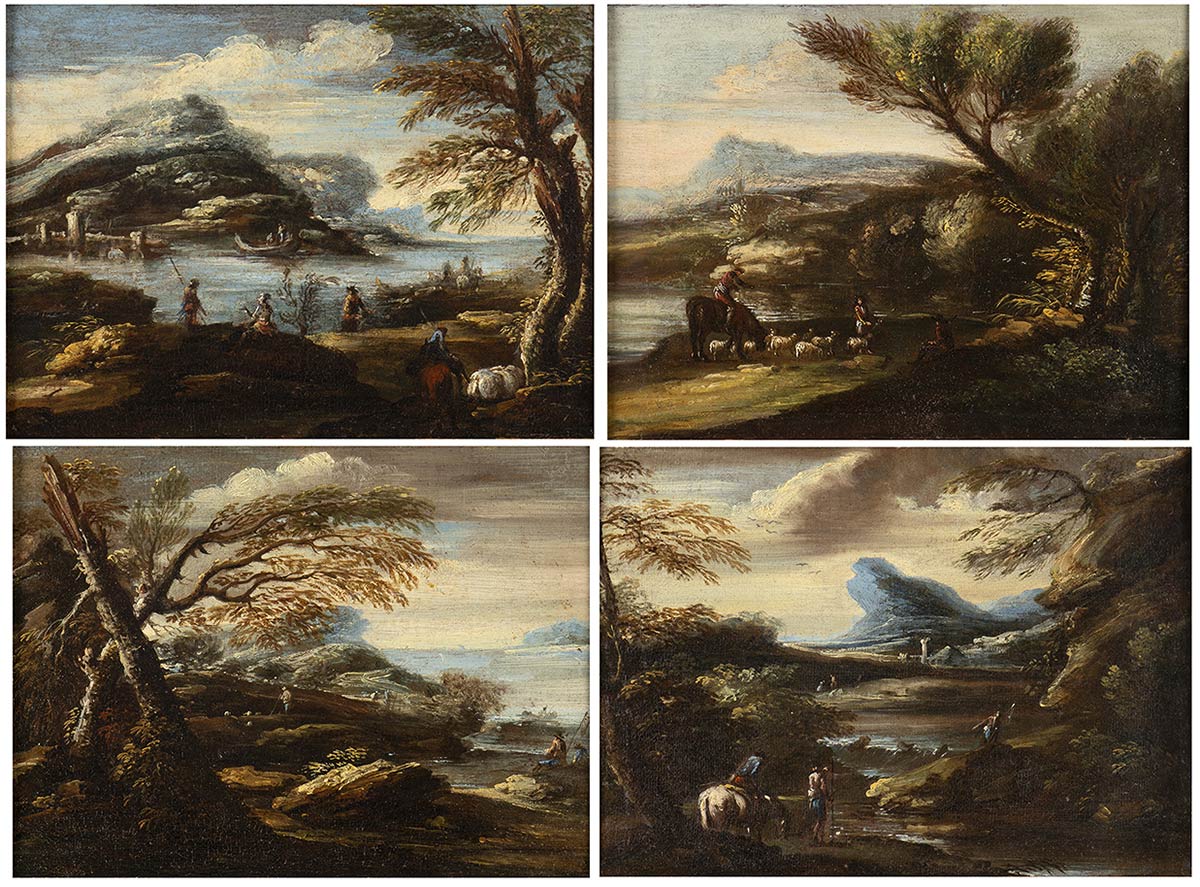 Lotto 104 | Paesaggi con figure, serie di 4 tele en pendant