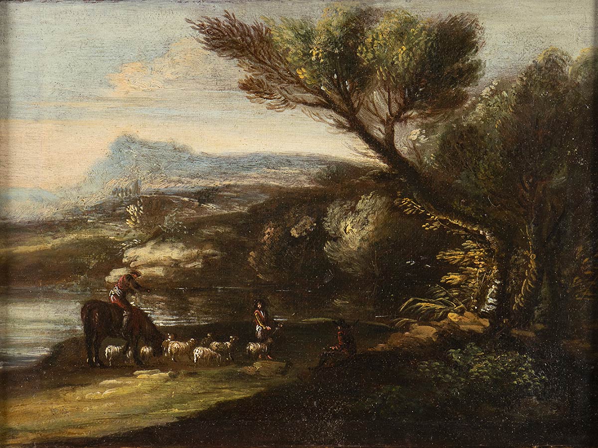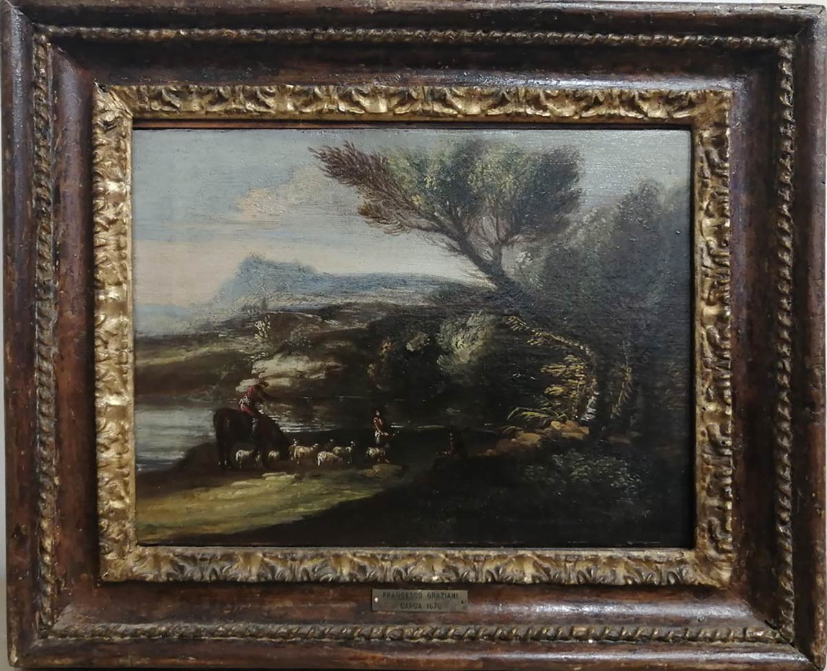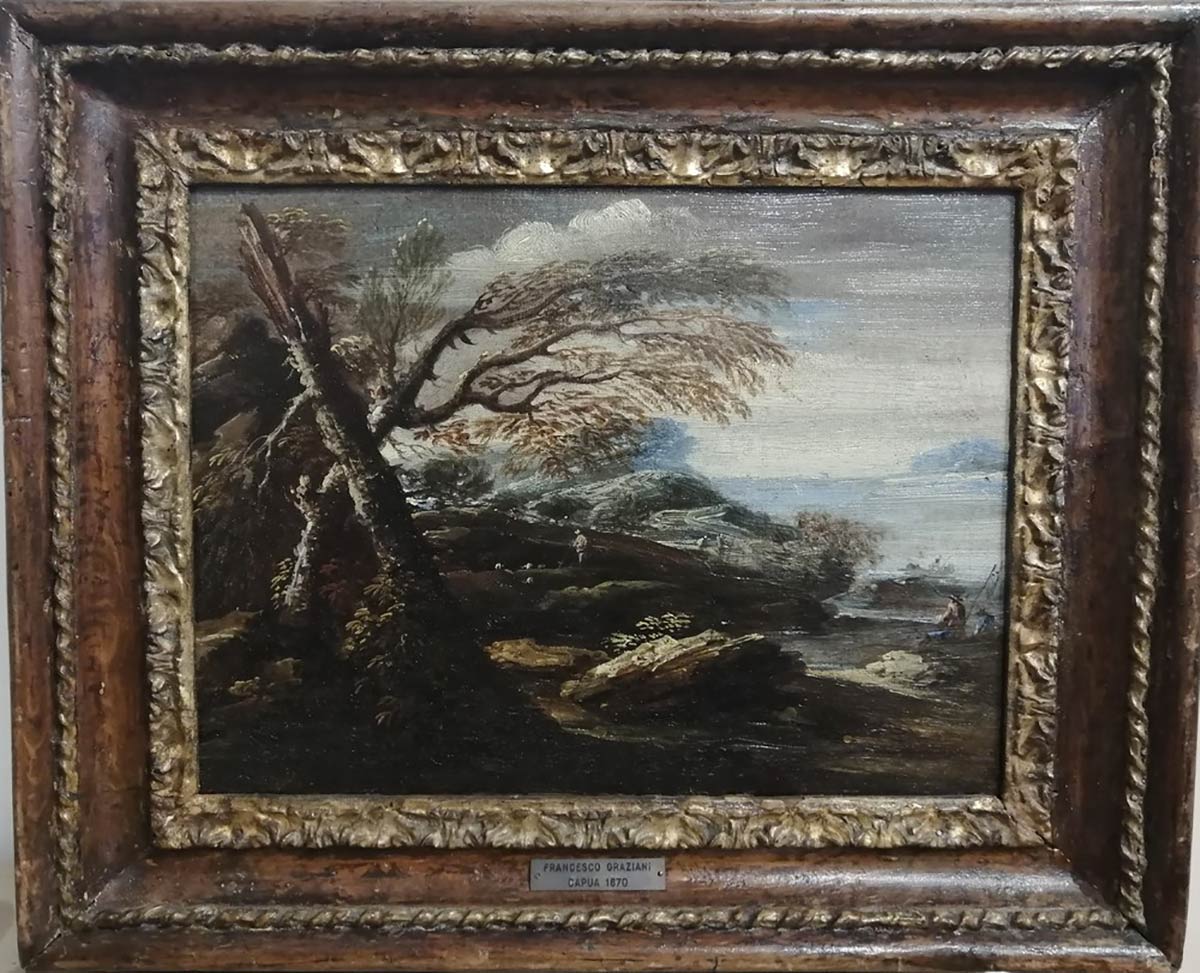 Questa suite di quattro dipinti va ricondotta senza esitazioni all'interno della produzione paesaggistica più felice di Francesco Graziani. Principalmente noto come specialista nel genere delle battaglie, Graziani espresse pienamente le sue doti anche nel paesaggio di fantasia. Ritroviamo in questa serie di quattro tele le più caratteristiche soluzioni del Graziani paesaggista, come l’accentuato sviluppo obliquo dell’elemento roccioso sullo sfondo e di quello arboreo in primo piano, quest’ultimo caratterizzato dall’andamento sinuoso dei tronchi e dall’ampiezza delle fronde. L’utilizzo di chiare fonti di luce, volte alla piena leggibilità della scena, e di una corposa materia pittorica ne confermano l’attribuzione, suggerendone il confronto per esempio con le opere di medesimo soggetto oggi conservate presso la Galleria Doria Pamphilj di Roma.