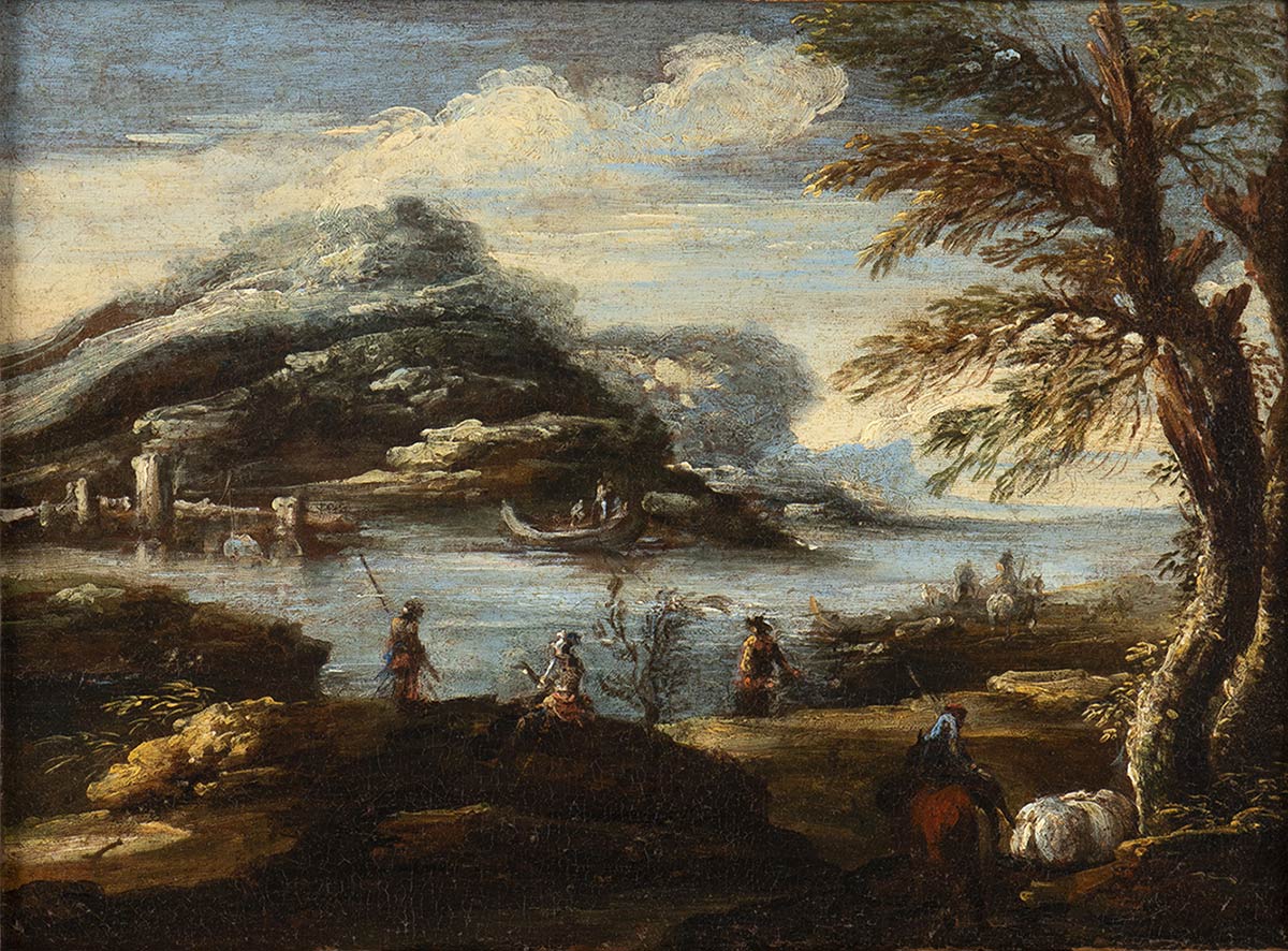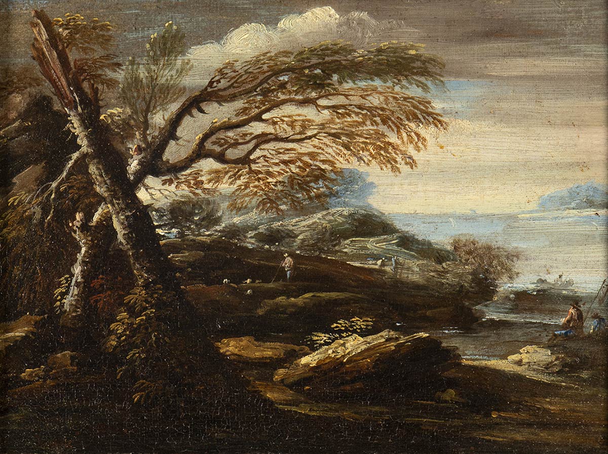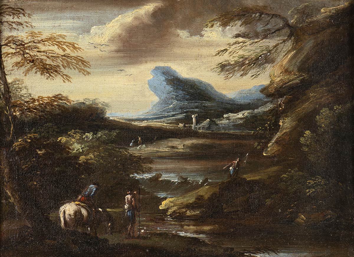 Questa suite di quattro dipinti va ricondotta senza esitazioni all'interno della produzione paesaggistica più felice di Francesco Graziani. Principalmente noto come specialista nel genere delle battaglie, Graziani espresse pienamente le sue doti anche nel paesaggio di fantasia. Ritroviamo in questa serie di quattro tele le più caratteristiche soluzioni del Graziani paesaggista, come l’accentuato sviluppo obliquo dell’elemento roccioso sullo sfondo e di quello arboreo in primo piano, quest’ultimo caratterizzato dall’andamento sinuoso dei tronchi e dall’ampiezza delle fronde. L’utilizzo di chiare fonti di luce, volte alla piena leggibilità della scena, e di una corposa materia pittorica ne confermano l’attribuzione, suggerendone il confronto per esempio con le opere di medesimo soggetto oggi conservate presso la Galleria Doria Pamphilj di Roma.