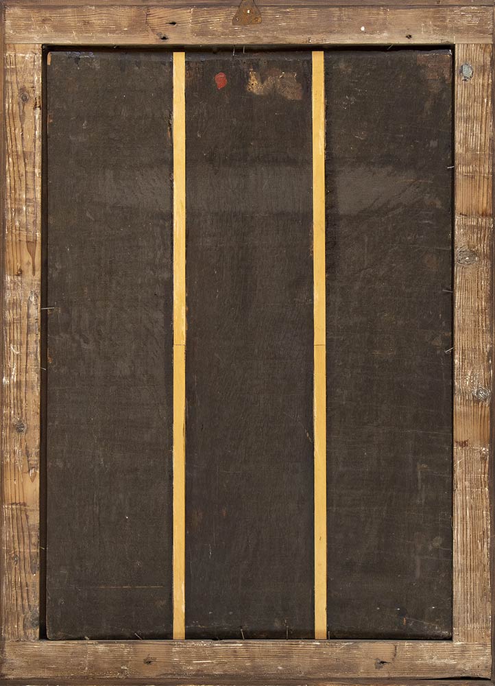 Al retro la tavola reca un bollo in ceralacca e una vecchia iscrizione: "MORILLO".