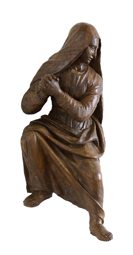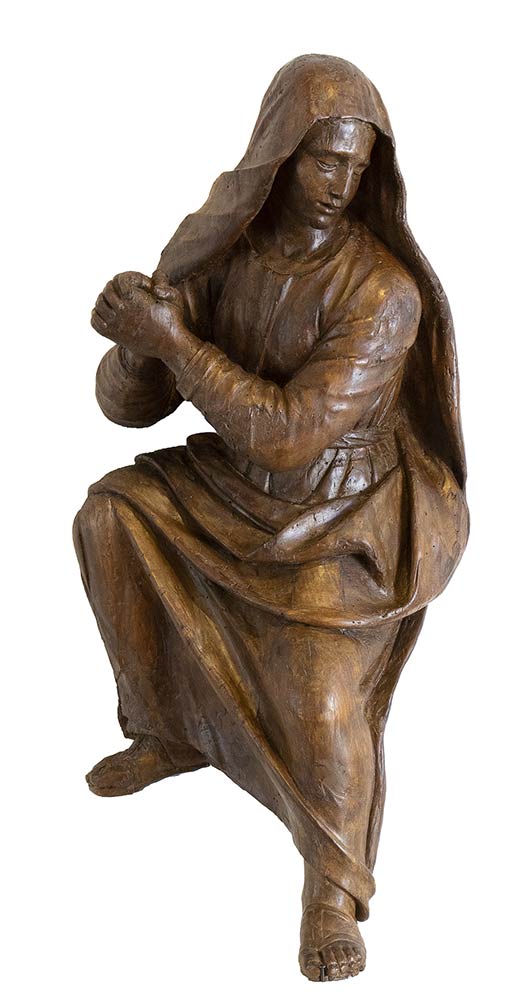 Assieme all'esemplare al lotto successivo doveva probabilmente far parte di un più ampio gruppo ligneo raffigurante un Compianto sul Cristo morto.