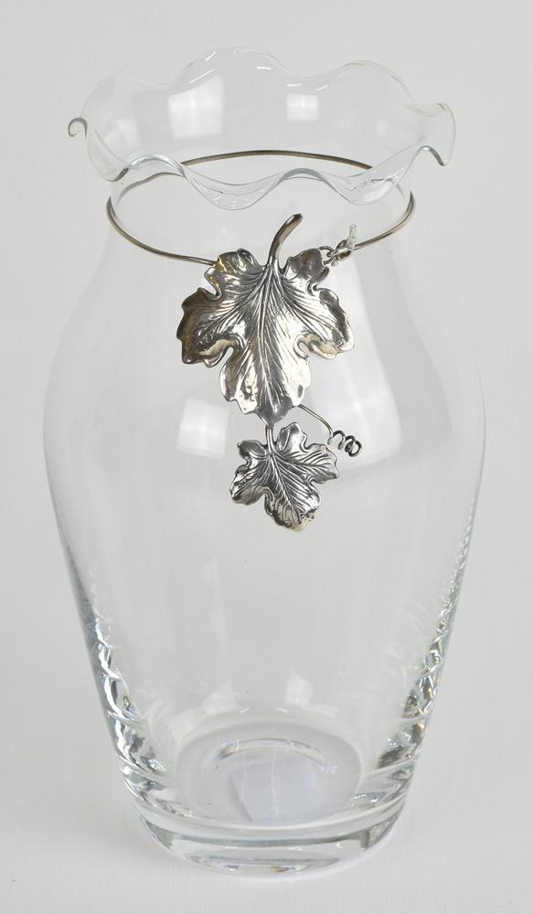 VASO IN VETRO con decorazione in argento Sterling 925 alt. cm 22