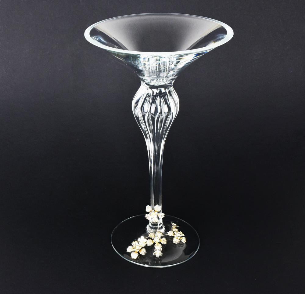 Lotto 8 | GRANDE COPPA IN VETRO CON DECORAZIONI IN METALLO ARGENTATO h cm 35