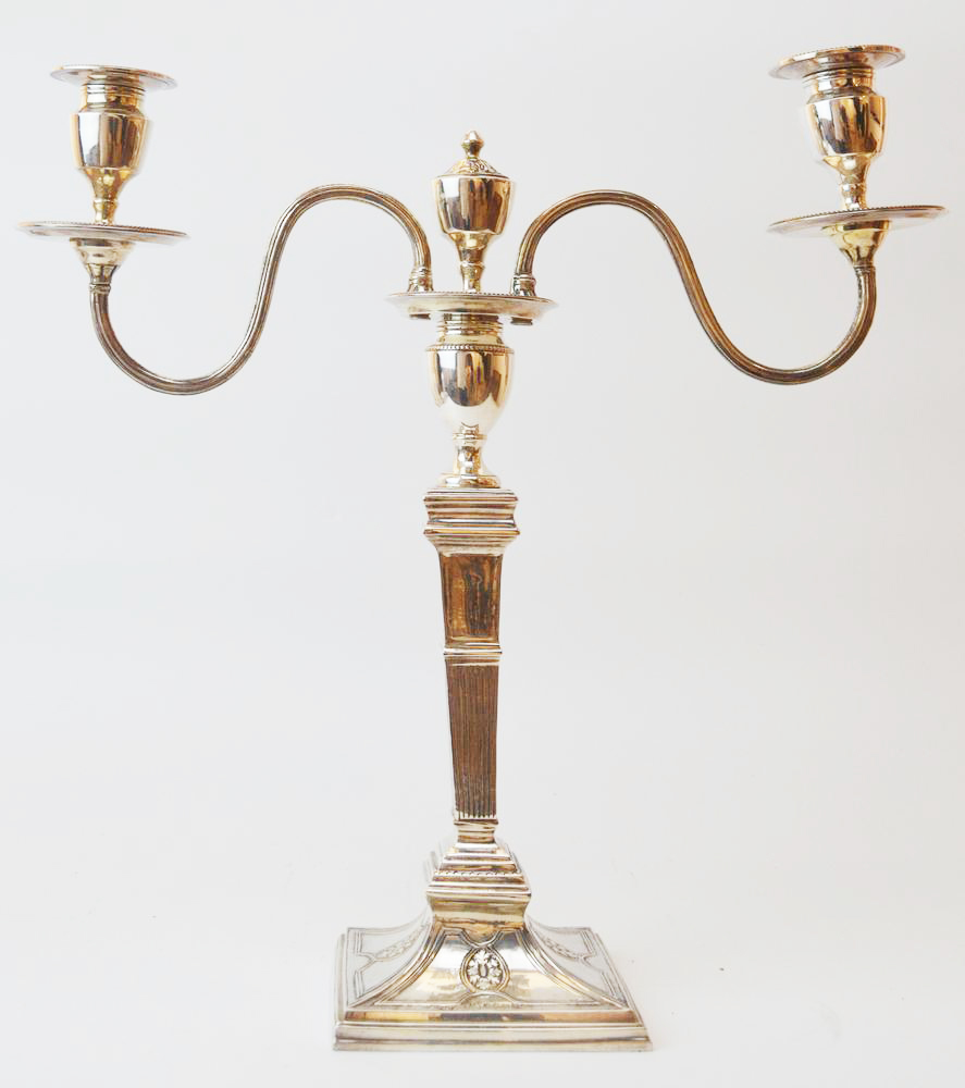 CANDELIERE IN ARGENTO METALLO ARGENTATO A DUE FUOCHI